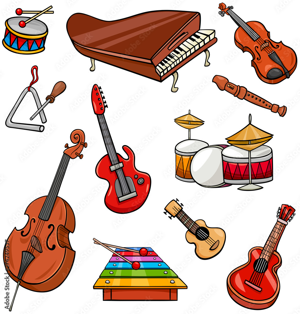 Fototapeta musical instruments cartoon illustration set