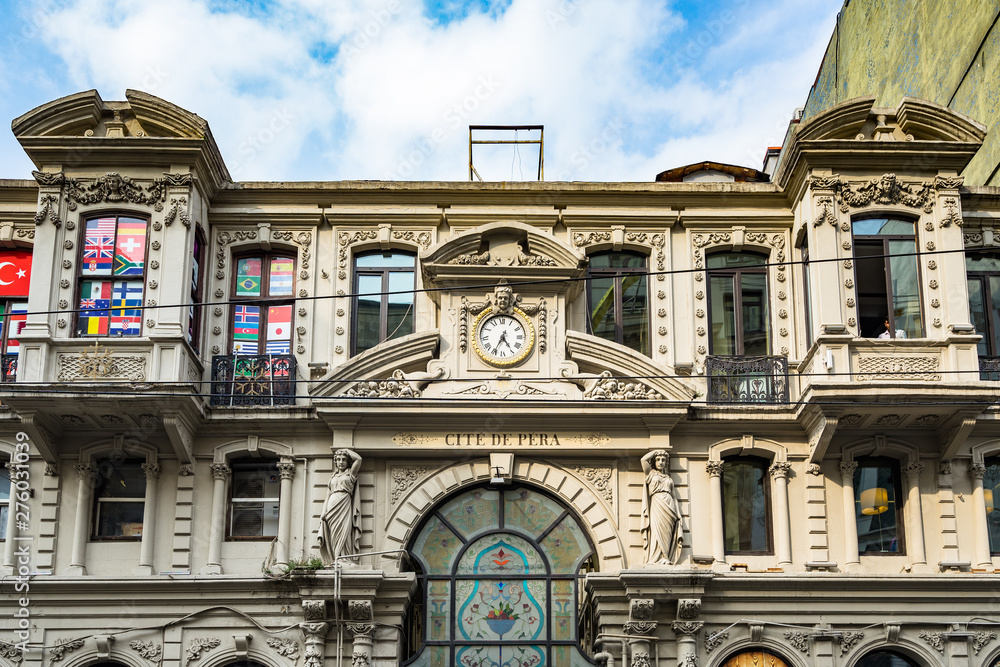 Fototapeta Facade of Cicek Pasaji (Cite de Pera), a famous historic passage on Istiklal Ave