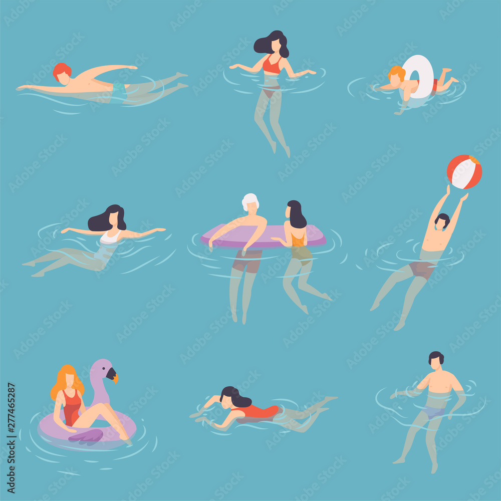 Fototapeta People Relaxing in the Sea, Ocean or Swimming Pool at Vacation Set, Young Men, W