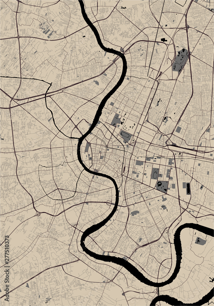 Fototapeta vector map of the city of Bangkok, Krung Thep Maha Nakhon, Kingdom of Thailand
