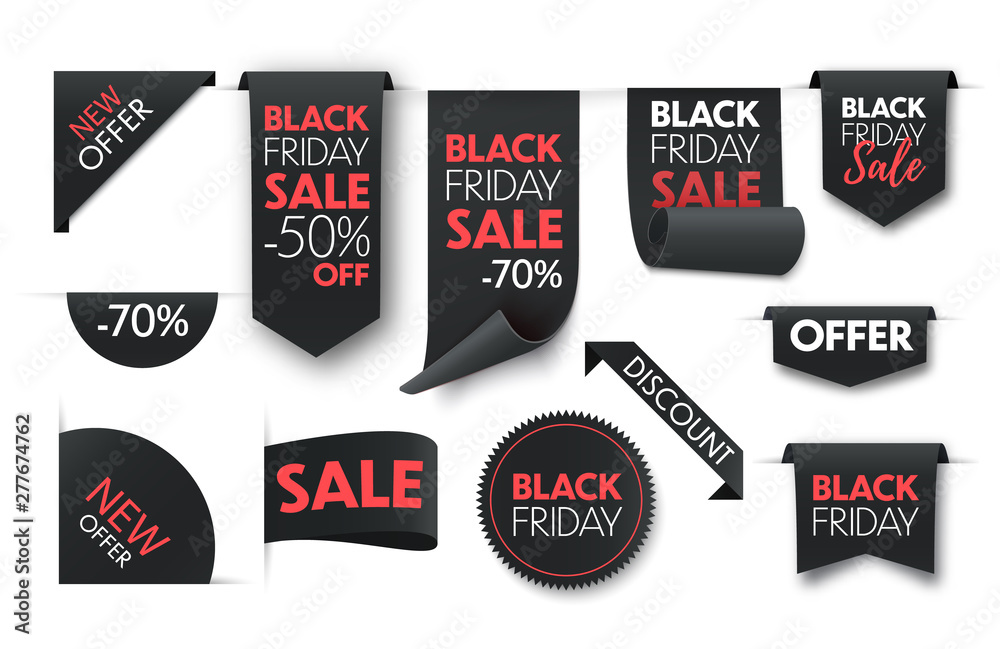 Fototapeta Black friday sale ribbon banners. Vector price tags
