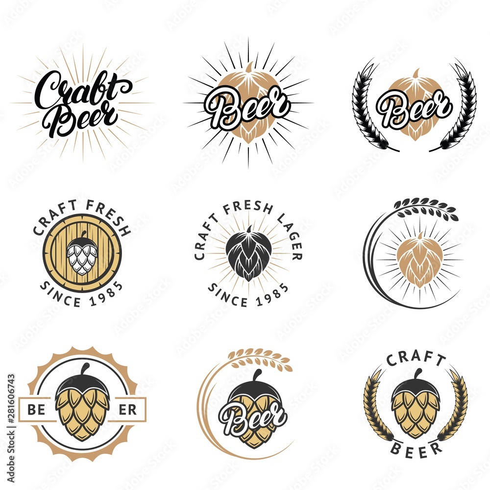 Fototapeta Craft fresh beer emblem, logo, badge and label vector set