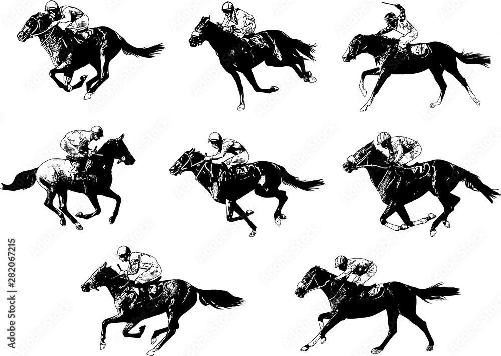 Fototapeta racing horses and jockeys sketch - vector