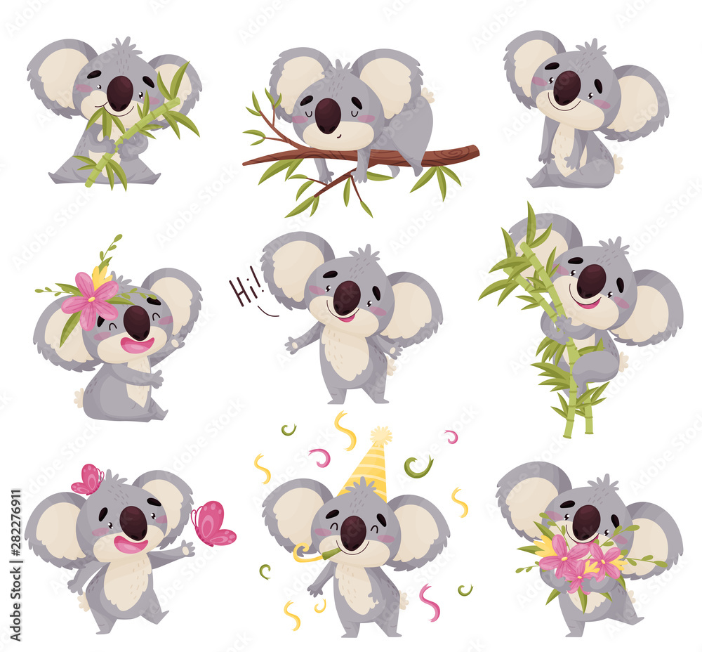 Fototapeta Set of images of koalas. Vector illustration on white background.