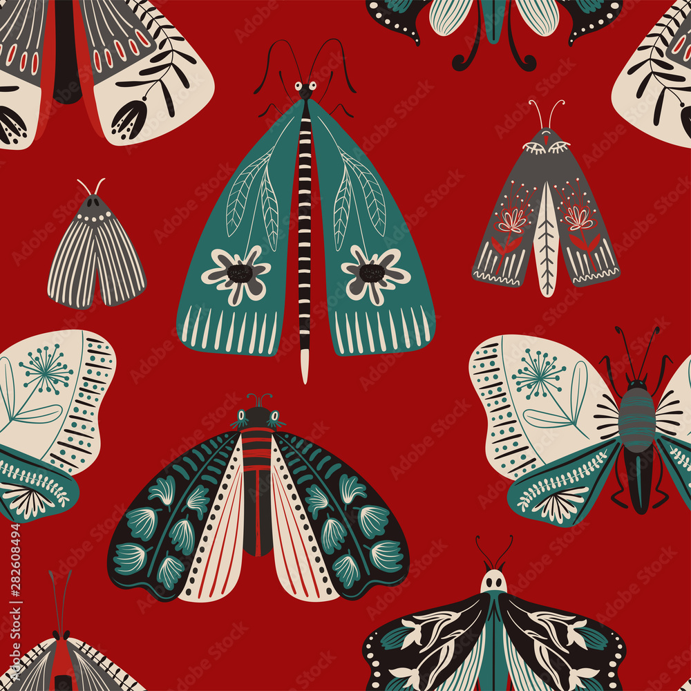 Fototapeta Folk Art Seamless Pattern With Moths.