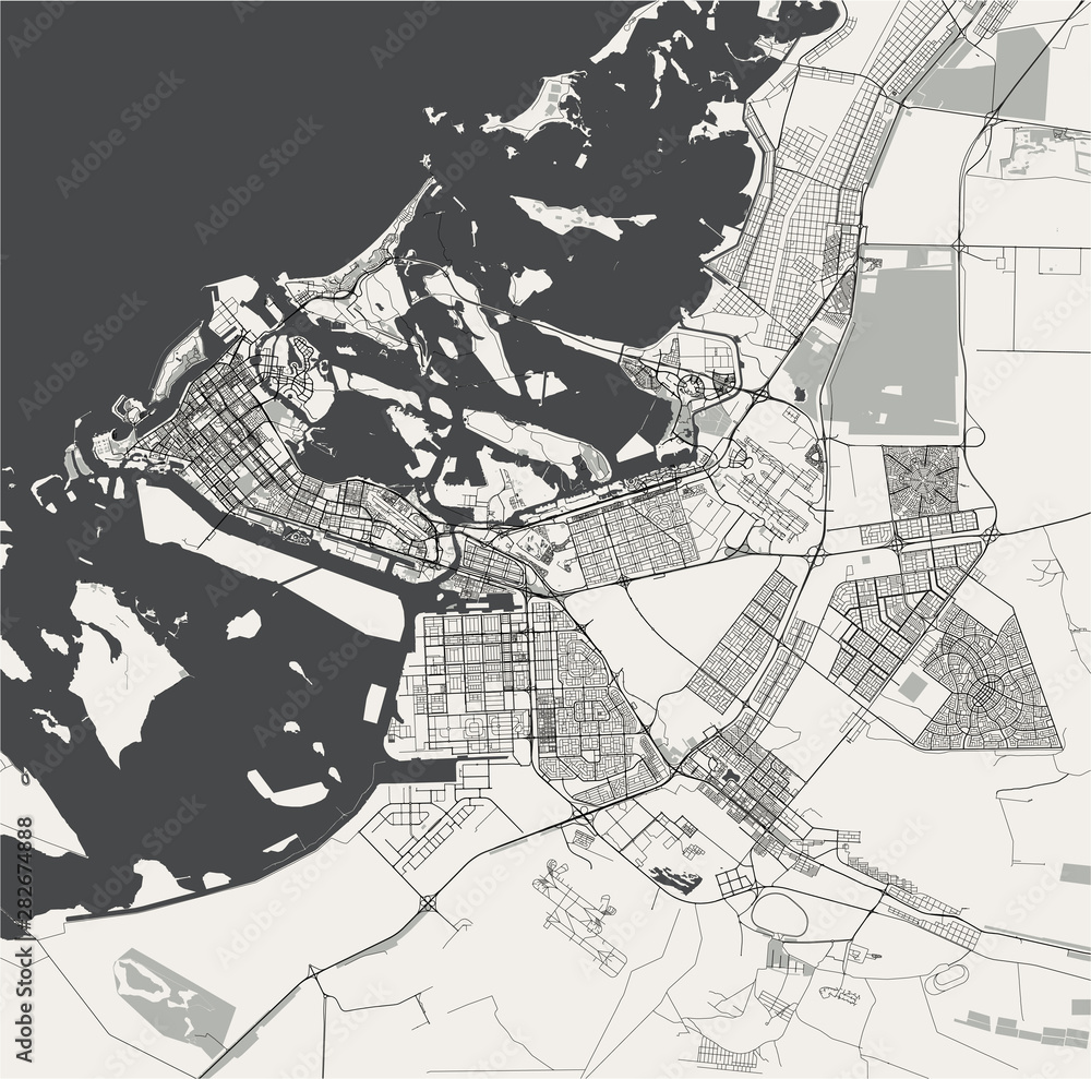 Fototapeta vector map of the city of Abu Dhabi, United Arab Emirates (UAE), Emirate of Abu