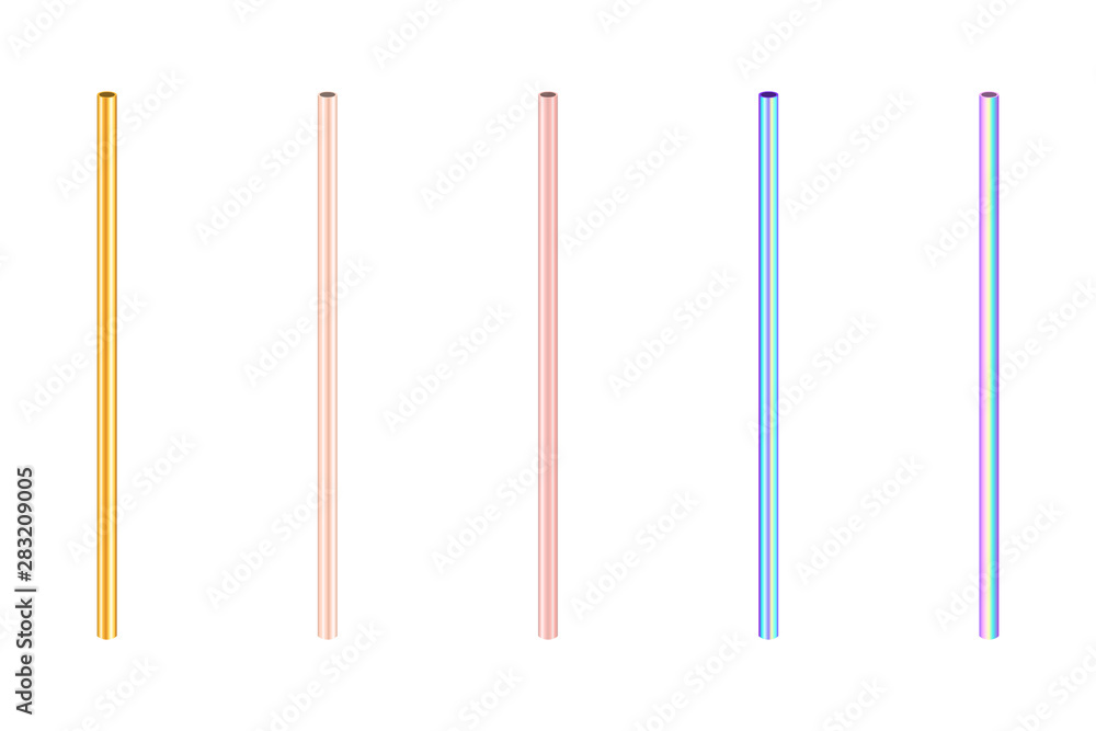 Fototapeta gold and colorful colored metallic stainless straight drinking straws as eco-fri
