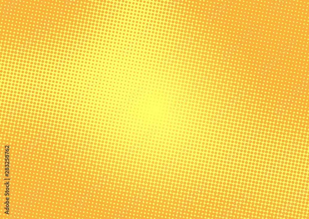 Fototapeta Yellow and orange pop art background with halftone dotted design in retro comic