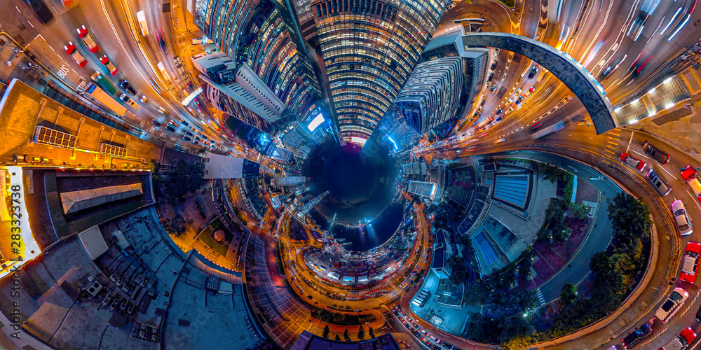 Fototapeta Panorama aerial view of Hong Kong Nightscape in Central