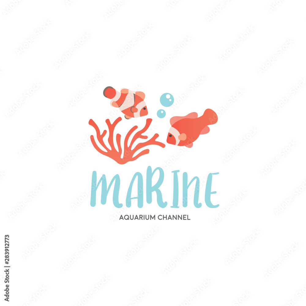 Fototapeta Cute reef school of clownfish logo illustration vector