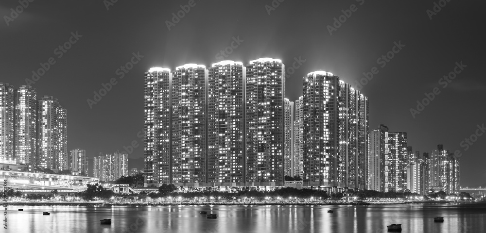Fototapeta Panorama of harbor of Hong Kong city at night