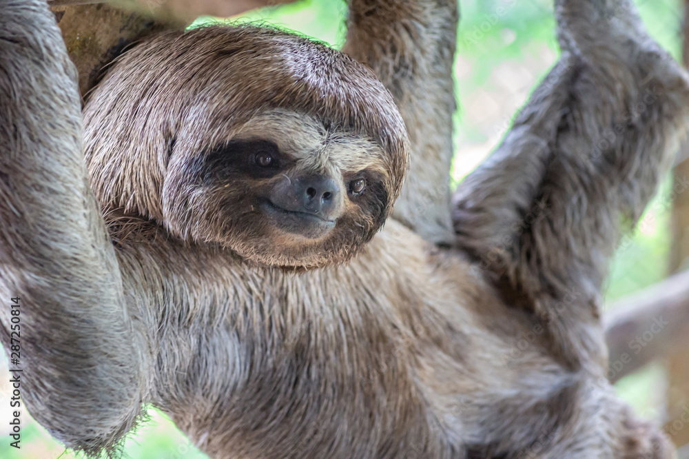 Fototapeta Sloth Brown-throated, slow animal (Bradypus variegatus) Animal face close up