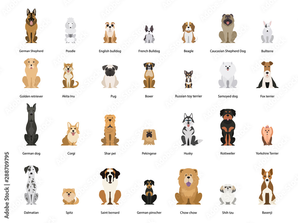 Fototapeta Dog set. Collection of dogs of various breed
