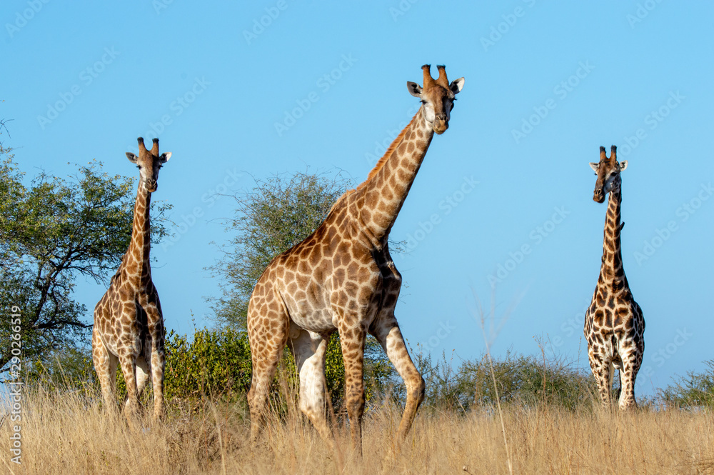 Fototapeta Landscape of giraffes in an open area