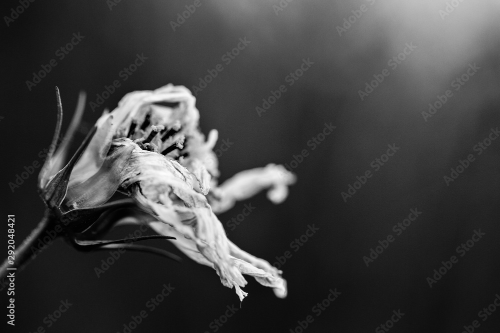 Fototapeta shriveling wild flower black and white monochrome close up