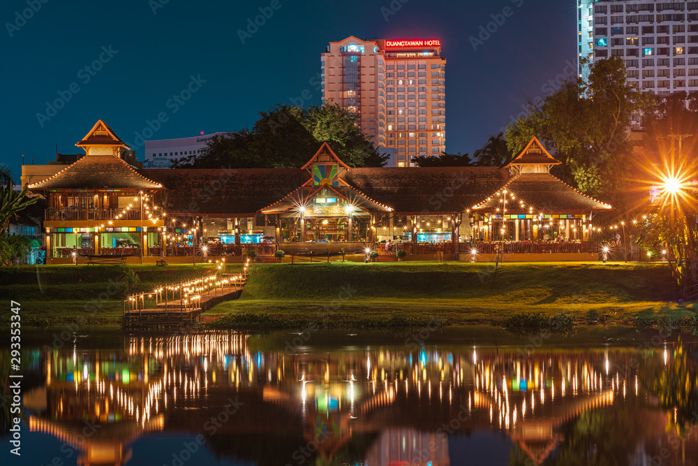 Fototapeta Steel bridge pingriver chiangmai at night