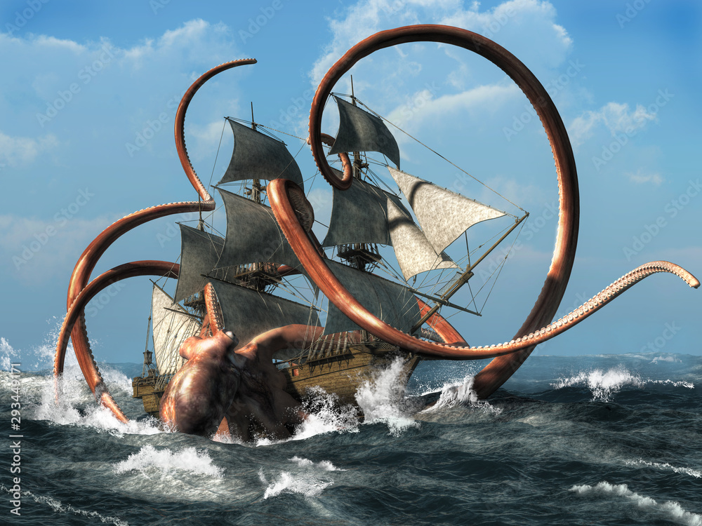 Fototapeta The Kraken is a creature of Scandinavian folklore said to be appear like a giant octopus or squid, a legendary monster capable of bringing down ships