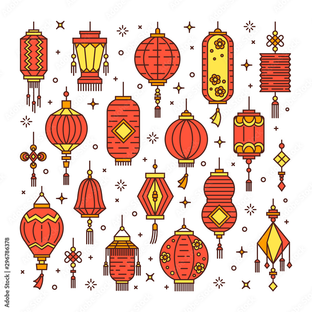 Fototapeta Vector set of asian street and chinese holiday lanterns