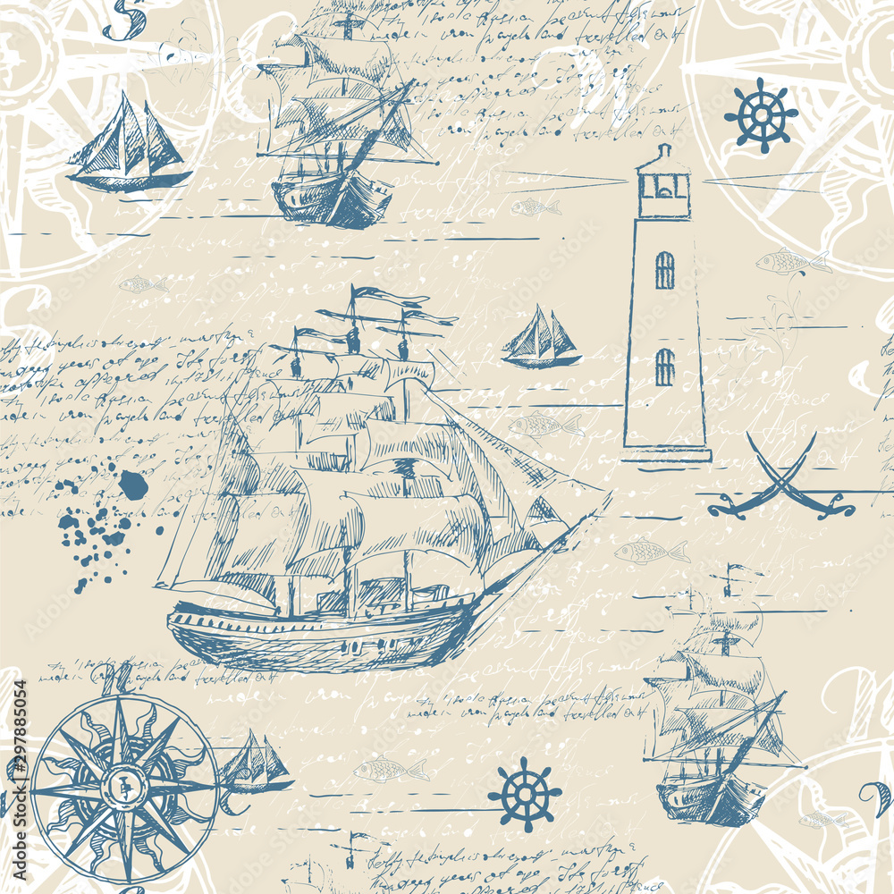 Fototapeta Vector abstract seamless background on the theme of travel, adventure and discovery