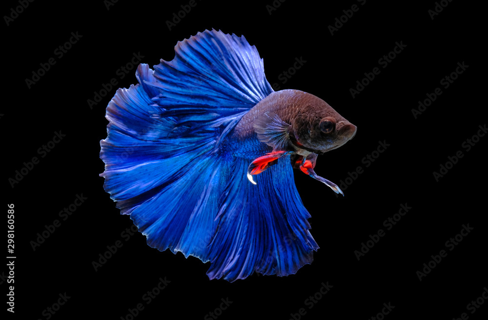 Fototapeta Capture the moving moment of fighting fish isolated on black background ( Betta