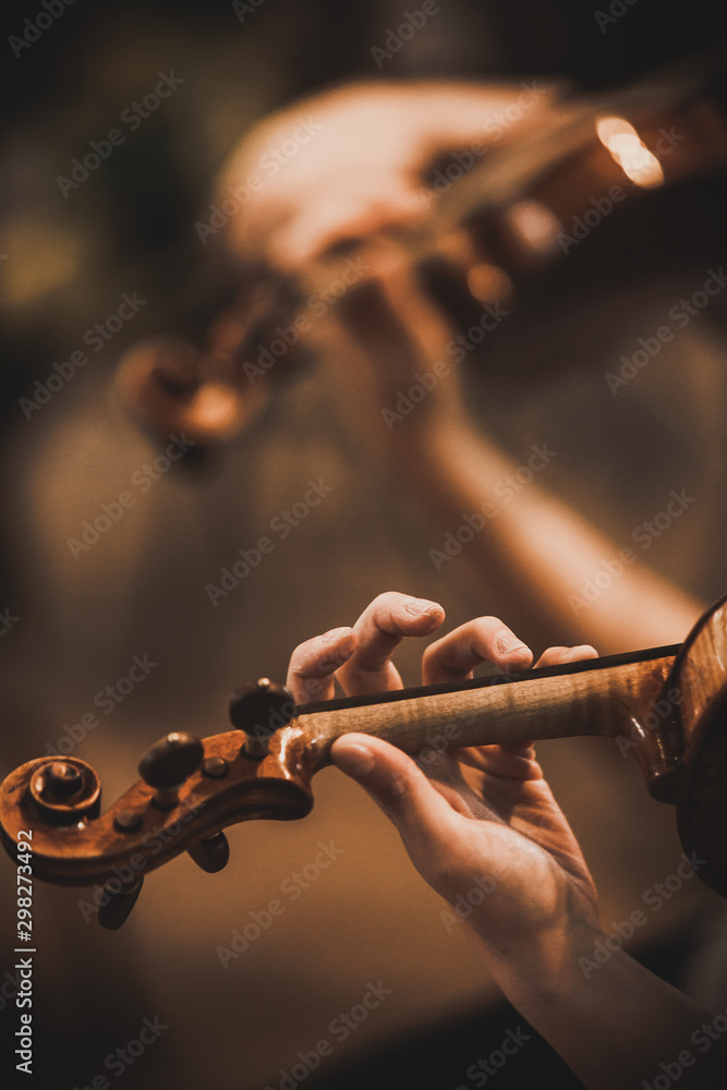 Fototapeta Close-up of part of the symphony masterpiece - Section for strings, violins and