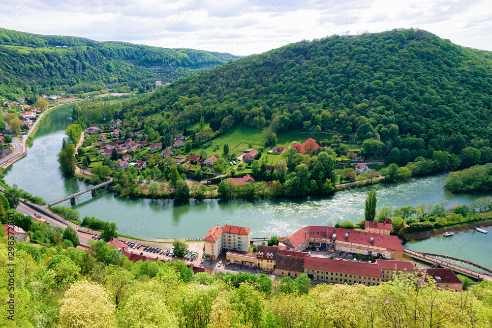 Fototapeta Landscape from Citadel of Besancon with River Doubs in Bourgogne