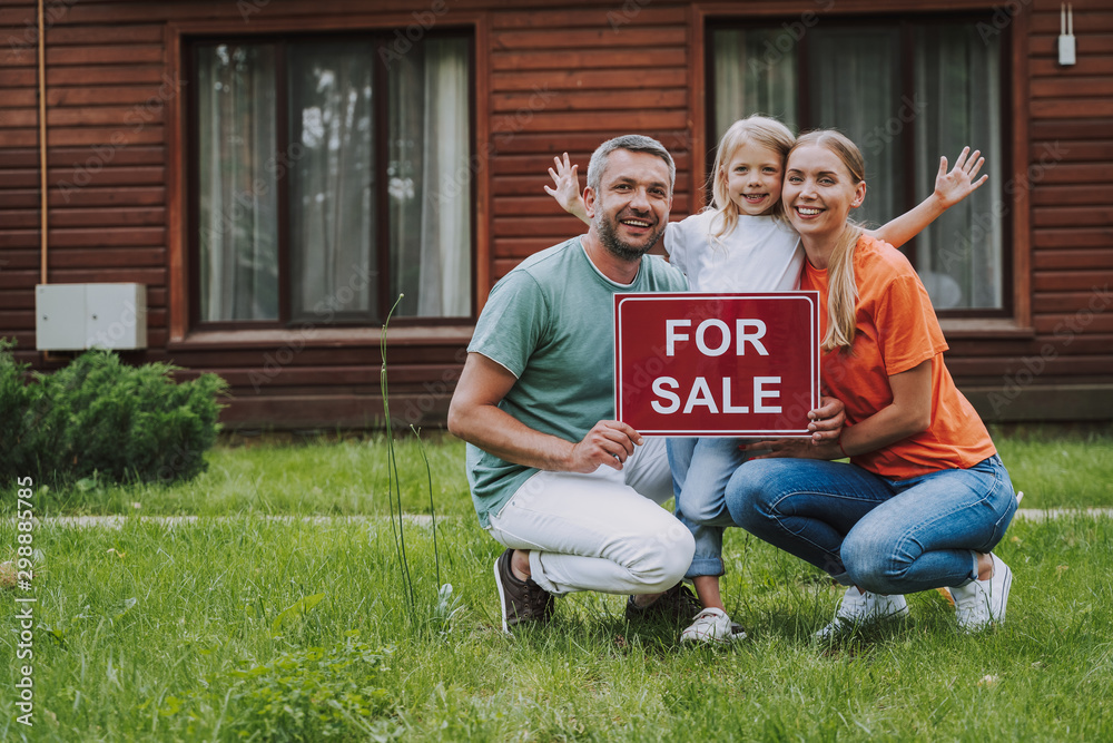 Fototapeta Happy family selling their house in countryside