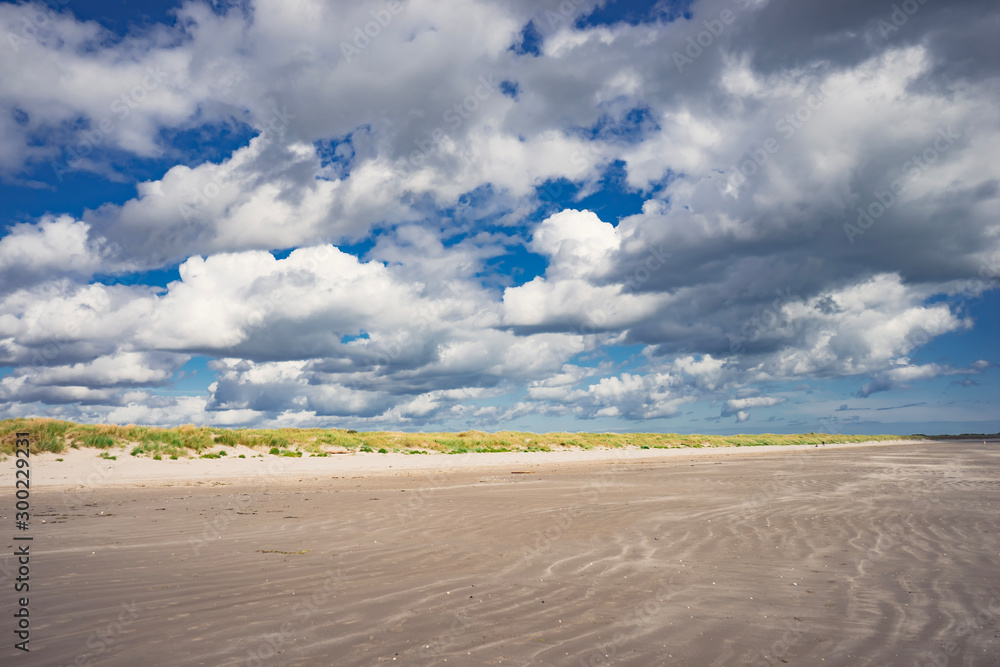 Fototapeta Ireland Dublin beach dune grass landscape with blue sky and clouds