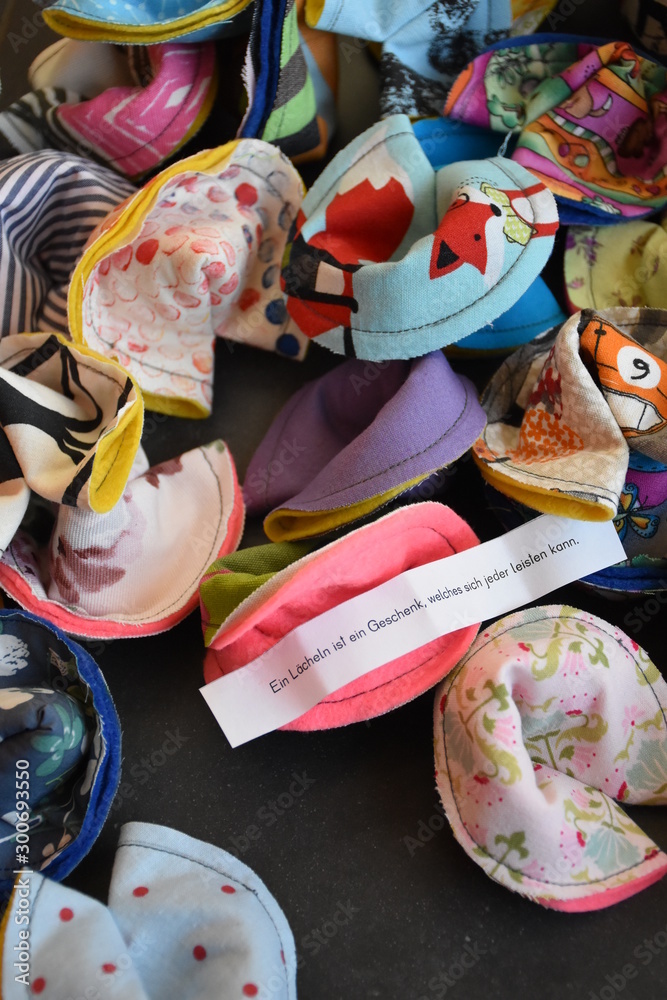 Fototapeta genähte Glückskekse mit Sprüchen