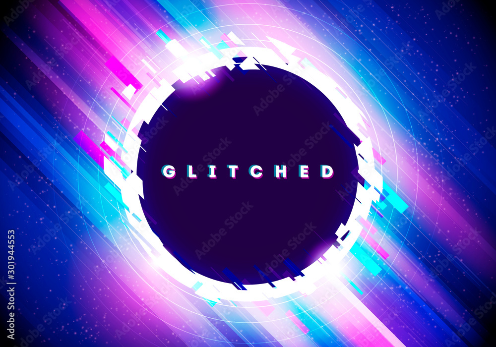 Fototapeta Vector Illustration Futuristic Neon Circle With Glitch Effect On Abstract Distorted Glowing Background