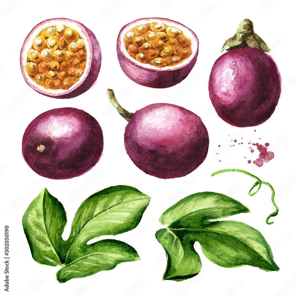 Fototapeta Passion fruit with leaf set