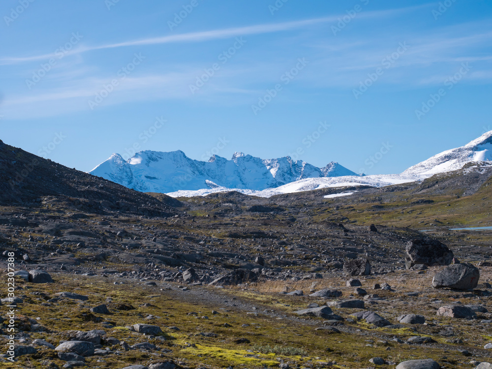 Fototapeta View on highest snow covered mountain peaks in Norway and Scandinavia, Jotunheimen National Park