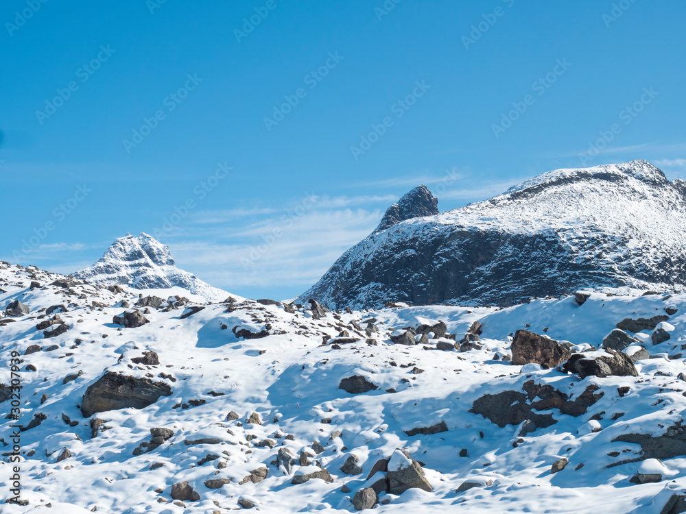 Fototapeta View on highest snow covered mountain peaks in Norway and Scandinavia, Jotunheimen National Park