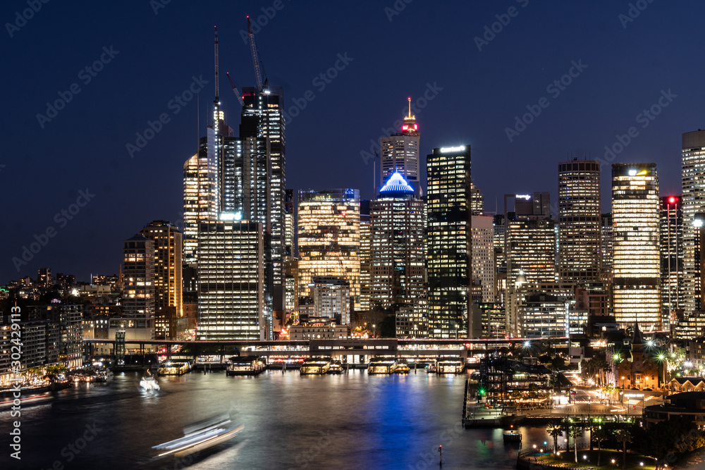 Fototapeta Twilight over the famous Circular Quay ferry terminal and the business district
