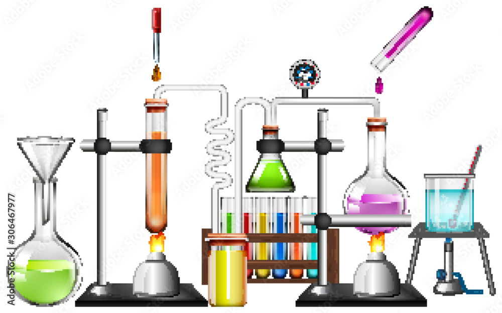 Fototapeta Set of science equipments on white background