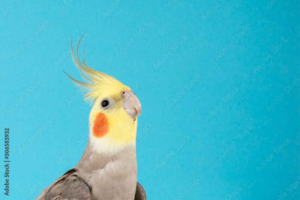 Fototapeta Cockatiel, Adorable parrot isolated on blue background, best parrot pictures