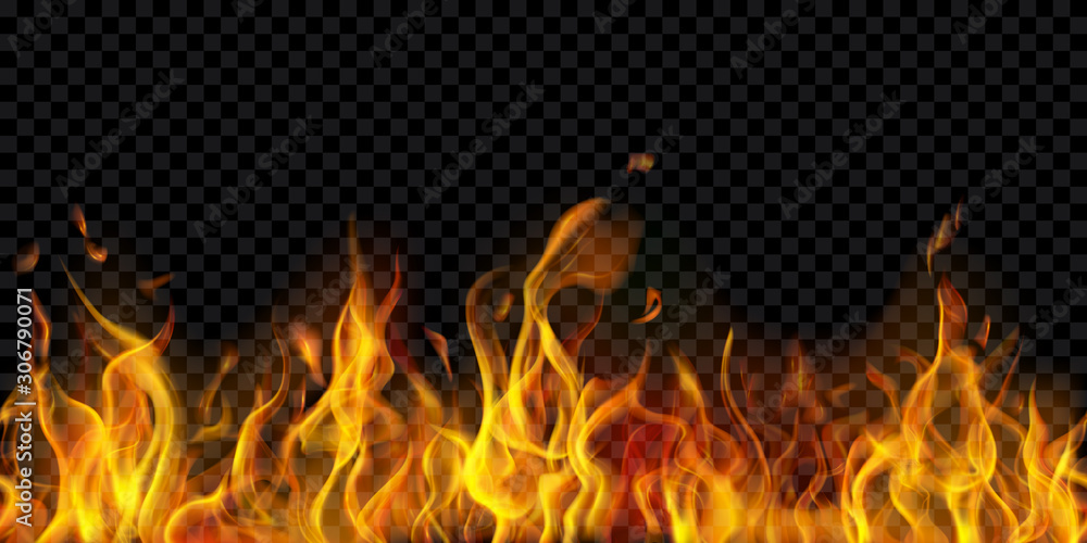 Fototapeta Translucent fire flames and sparks with horizontal repetition on transparent background