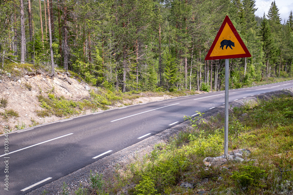 Fototapeta Vägskylt varning för björn