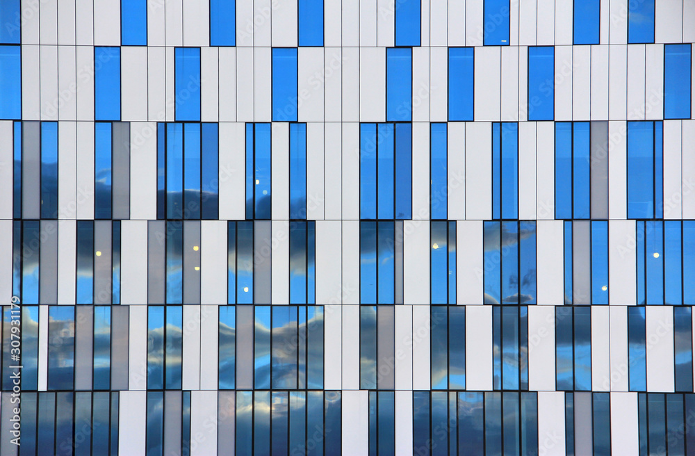 Fototapeta Exterior of modern building with repetitive texture, facade detail