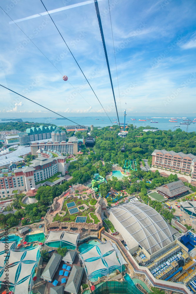 Fototapeta Singapore - May 25,2018: Sentosa view look from cable car