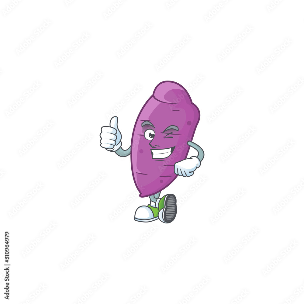 Fototapeta cartoon character of okinawa yaw making Thumbs up gesture
