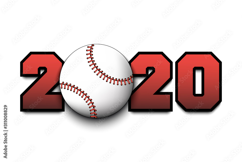 Fototapeta New Year numbers 2020 and baseball ball