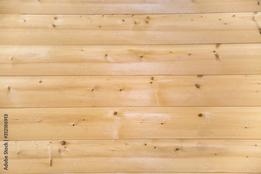 Fototapeta Background of a block house of coniferous trees with a beautiful pattern of the structure of trees knots