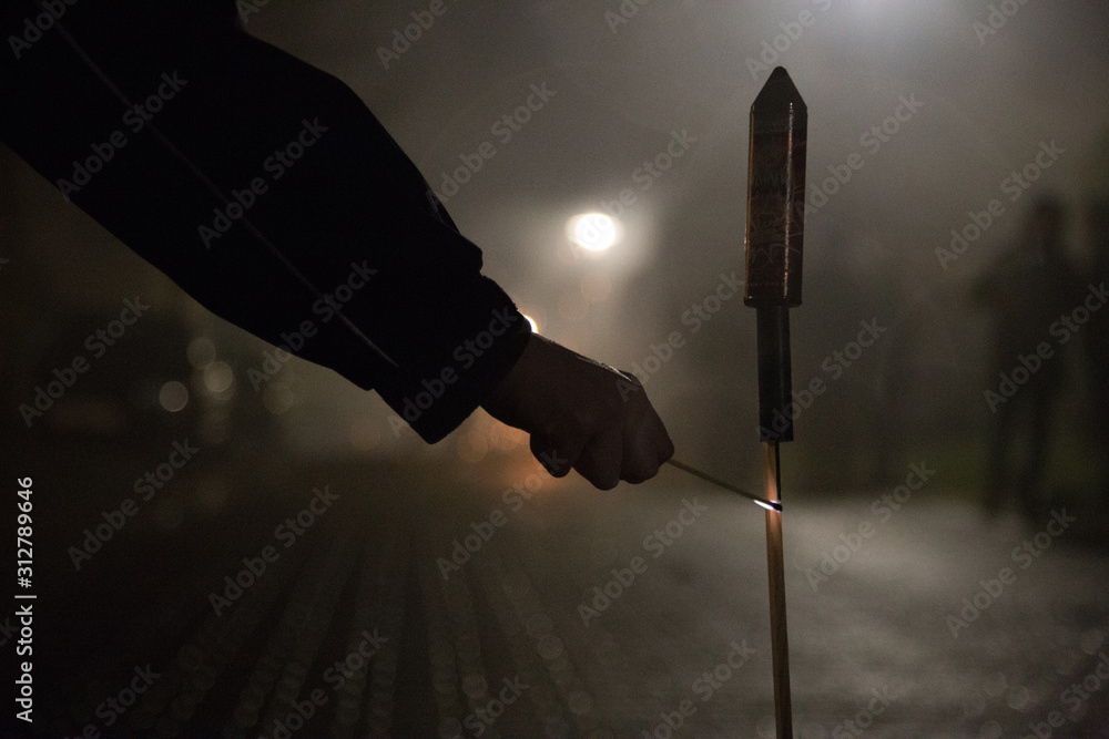 Fototapeta Anzünden einer Silvesterrakete