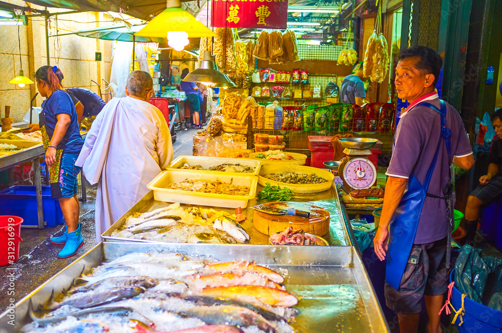 Fototapeta The fresh fish market in Chinatown of Bangkok, Thailand