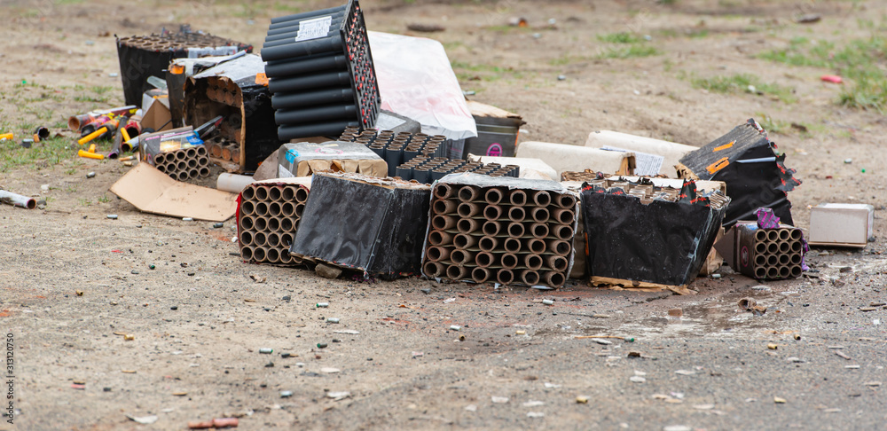 Fototapeta Silvester Feuerwerksmüll nach der Silvesternacht