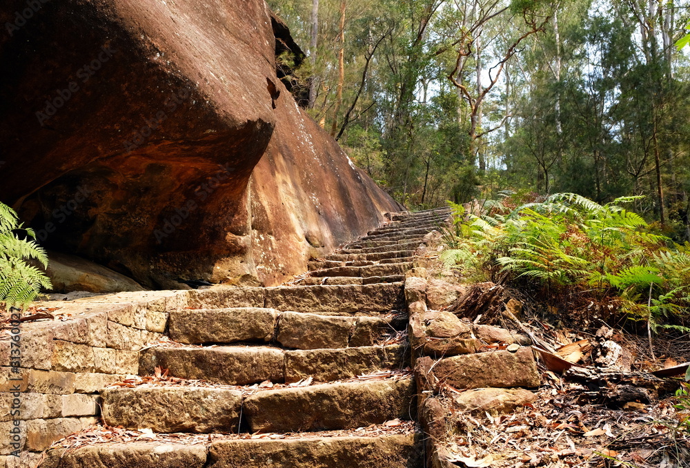 Fototapeta A sand stone stairway going up the hill in Berowra National Park, Australia
