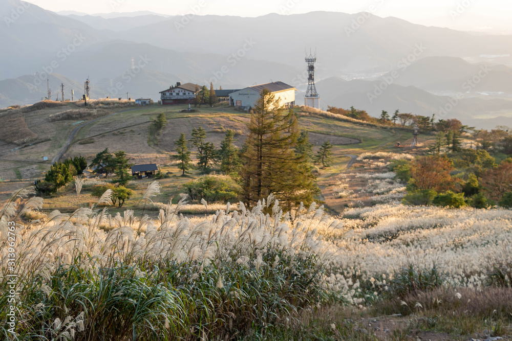Fototapeta Ibuki Hiking Trail at Sunset, Tall grass swaying in warm autumn wind