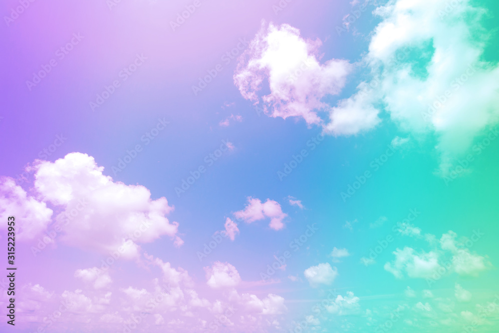 Fototapeta Colorful pink and green sky with clouds background.