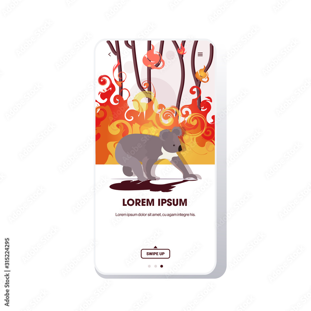 Fototapeta koala escaping from forest fires in australia animals dying in wildfire bushfire